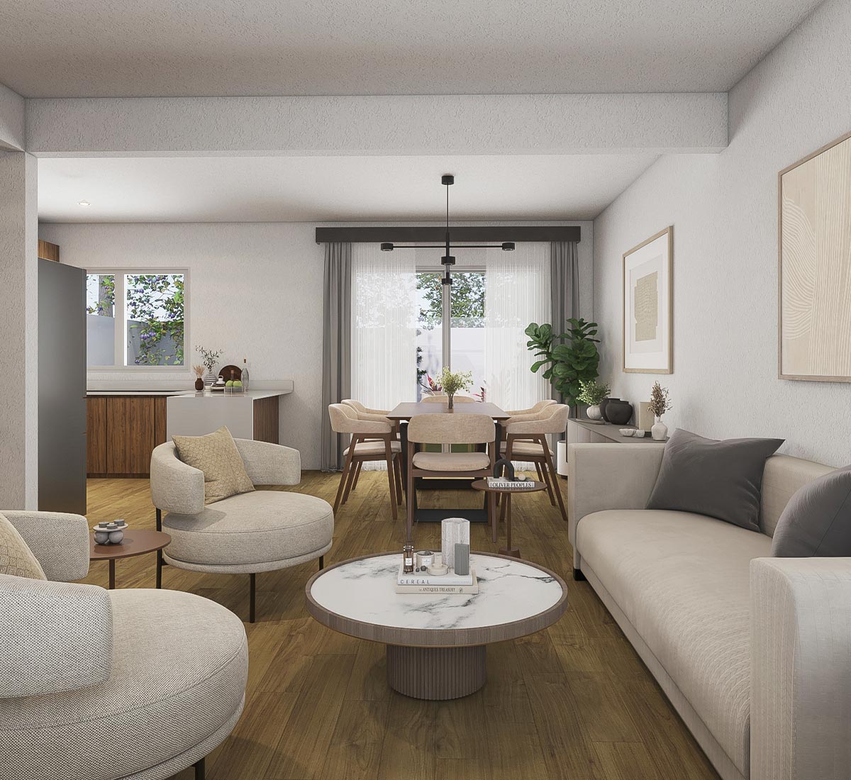 Nuestras residencias y apartamentos cuentan con acabados de calidad y distribuciones funcionales, todo al alcance de tu presupuesto. Elige entre nuestra casa de tres niveles, perfecta para familias grandes, o nuestros apartamentos ideales para quienes inician su vida juntos. Además, disfruta de amplias áreas verdes y zonas de recreación en contacto con la naturaleza.